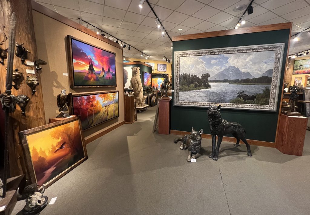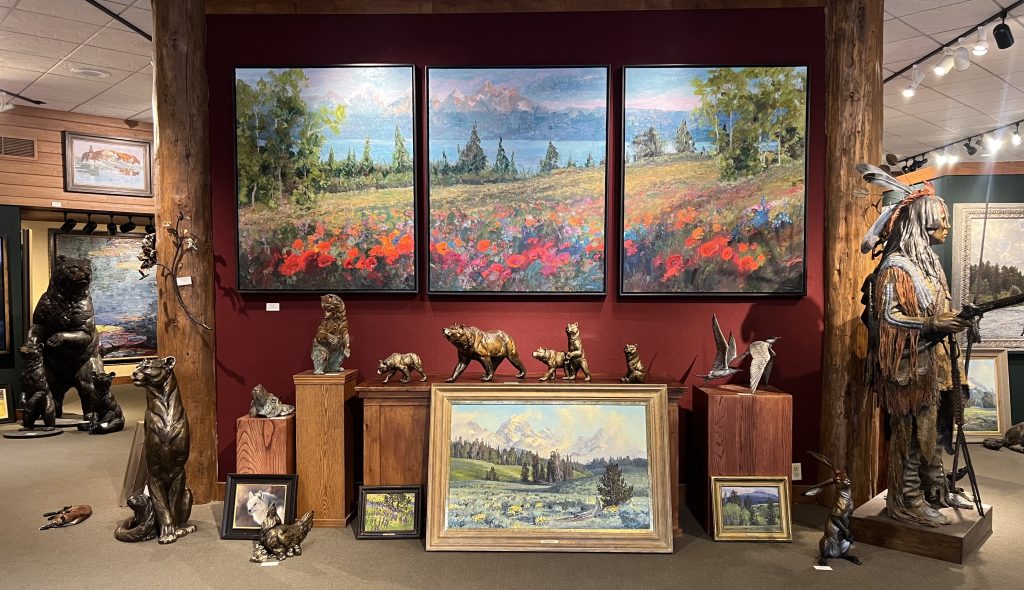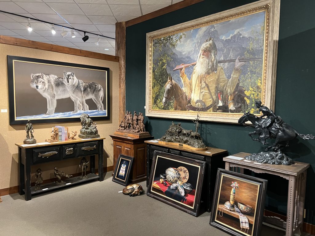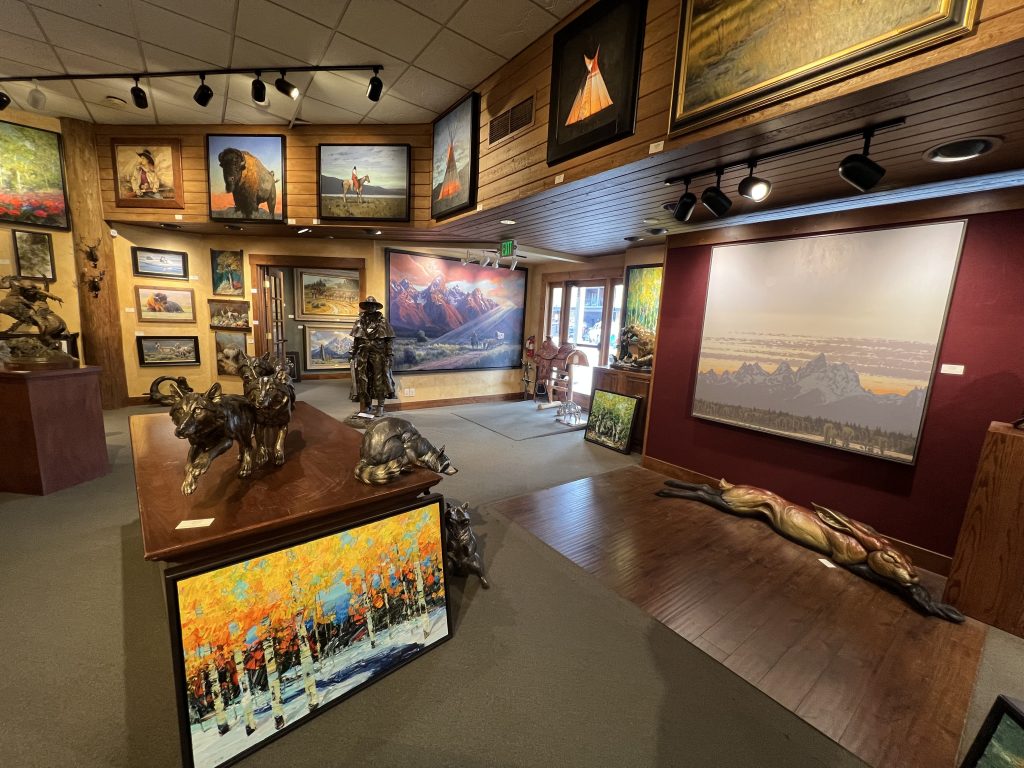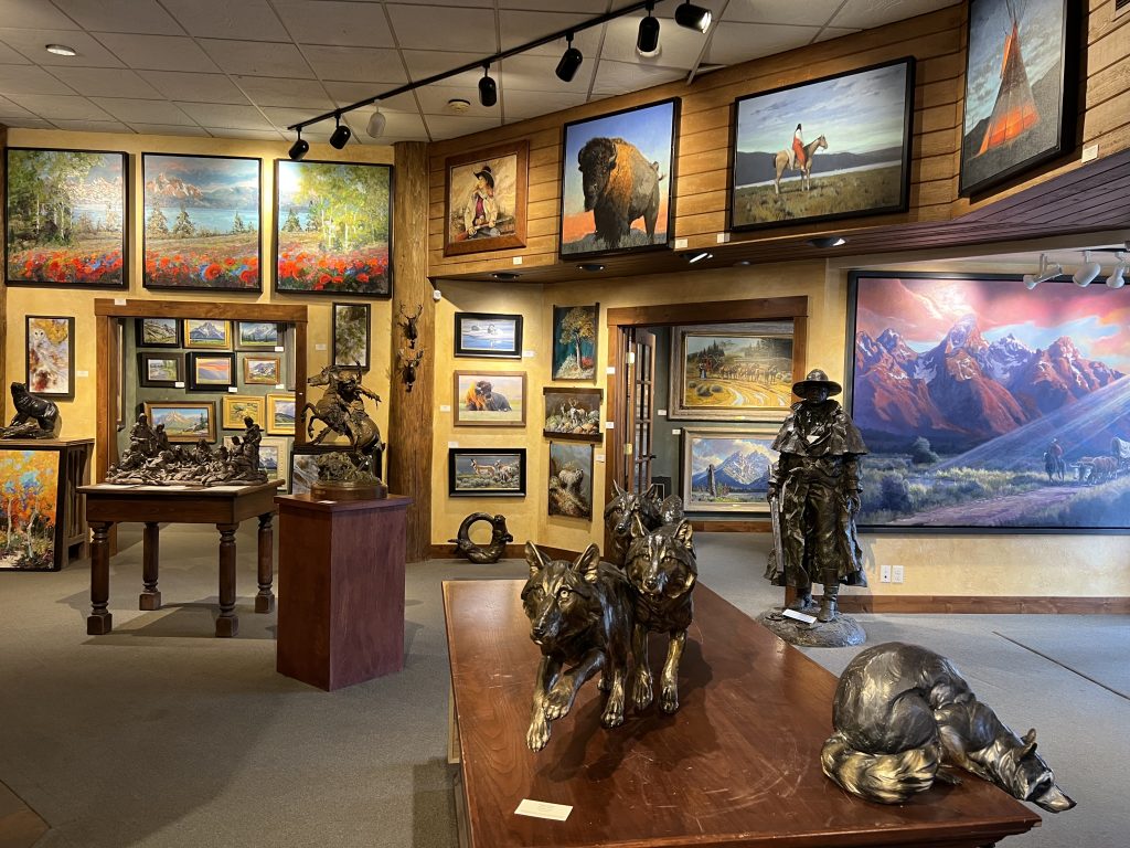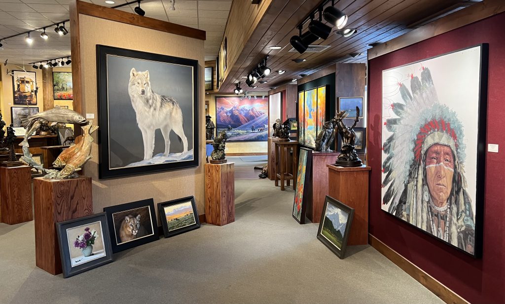 Welcome to Mountain Trails Gallery. We specialize in original paintings and bronze sculptures by some of today’s most important artists. We are located on the town square of downtown Jackson, Wyoming and have over 6000 square feet of gallery space. Our goal is to inform visitors about our artists in a relaxed and “non-pressure” sales environment. We hope you can visit us in person, but please let us know if we can provide any information.