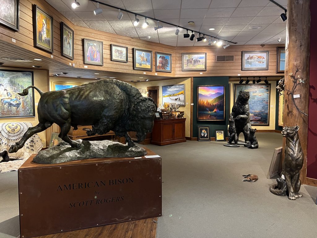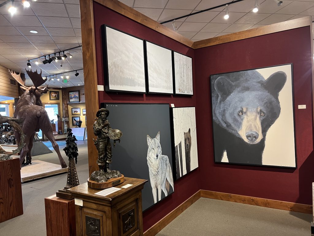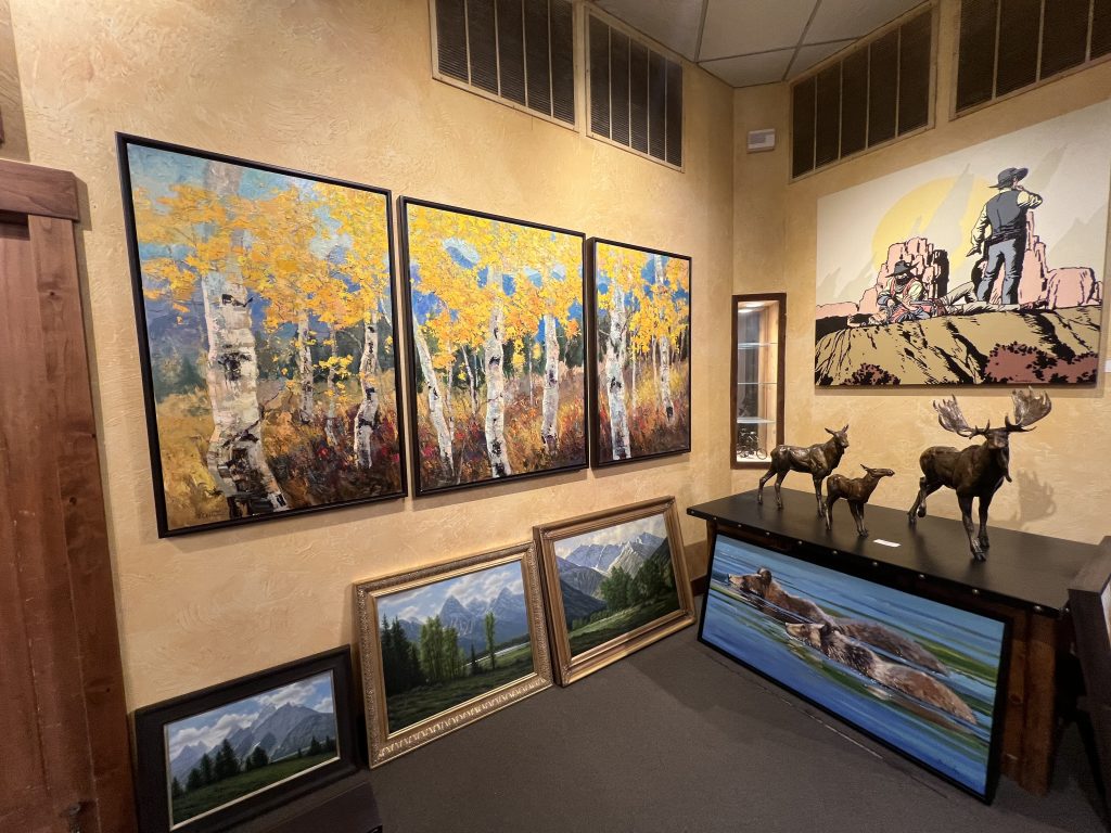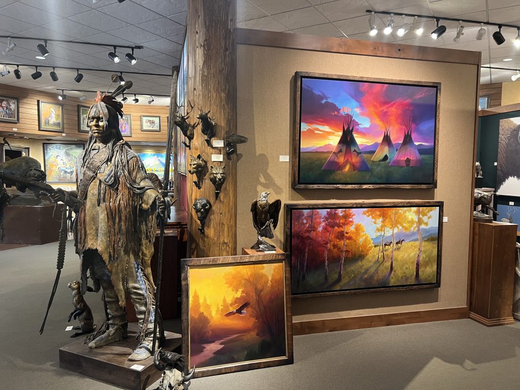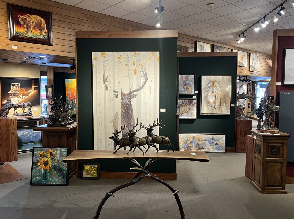 Welcome to Mountain Trails Gallery. We specialize in original paintings and bronze sculptures by some of today’s most important artists. We are located on the town square of downtown Jackson, Wyoming and have over 6000 square feet of gallery space. Our goal is to inform visitors about our artists in a relaxed and “non-pressure” sales environment. We hope you can visit us in person, but please let us know if we can provide any information.