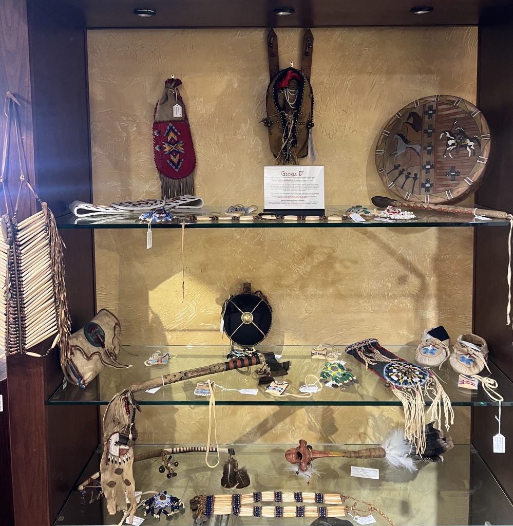 Gloria D’ credits the creativity of her art to the Native American people, their culture, and religion. For Gloria, born in 1954, art has been a way of life. She is a self-taught artist and historian who has learned her art through the elders of South Dakota where she lived for over 20 years.