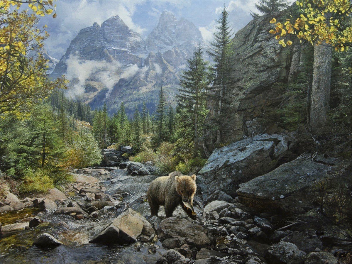 Philbeck’s work depicts the bucolic and wild landscapes of America and Canada, often in dramatic light and grand scale. Working mainly in oil on canvas, his works are highly detailed, realistic, and reflect the variegated American landscape such the Rocky Mountains, the rolling hills of the Carolinas, or crashing waves of the Atlantic Ocean. Elements of Regionalism, the Hudson River and Barbizon Schools are his most prominent artistic influences and is part of the artistic movement or “school” known as the Blue Ridge Realists.